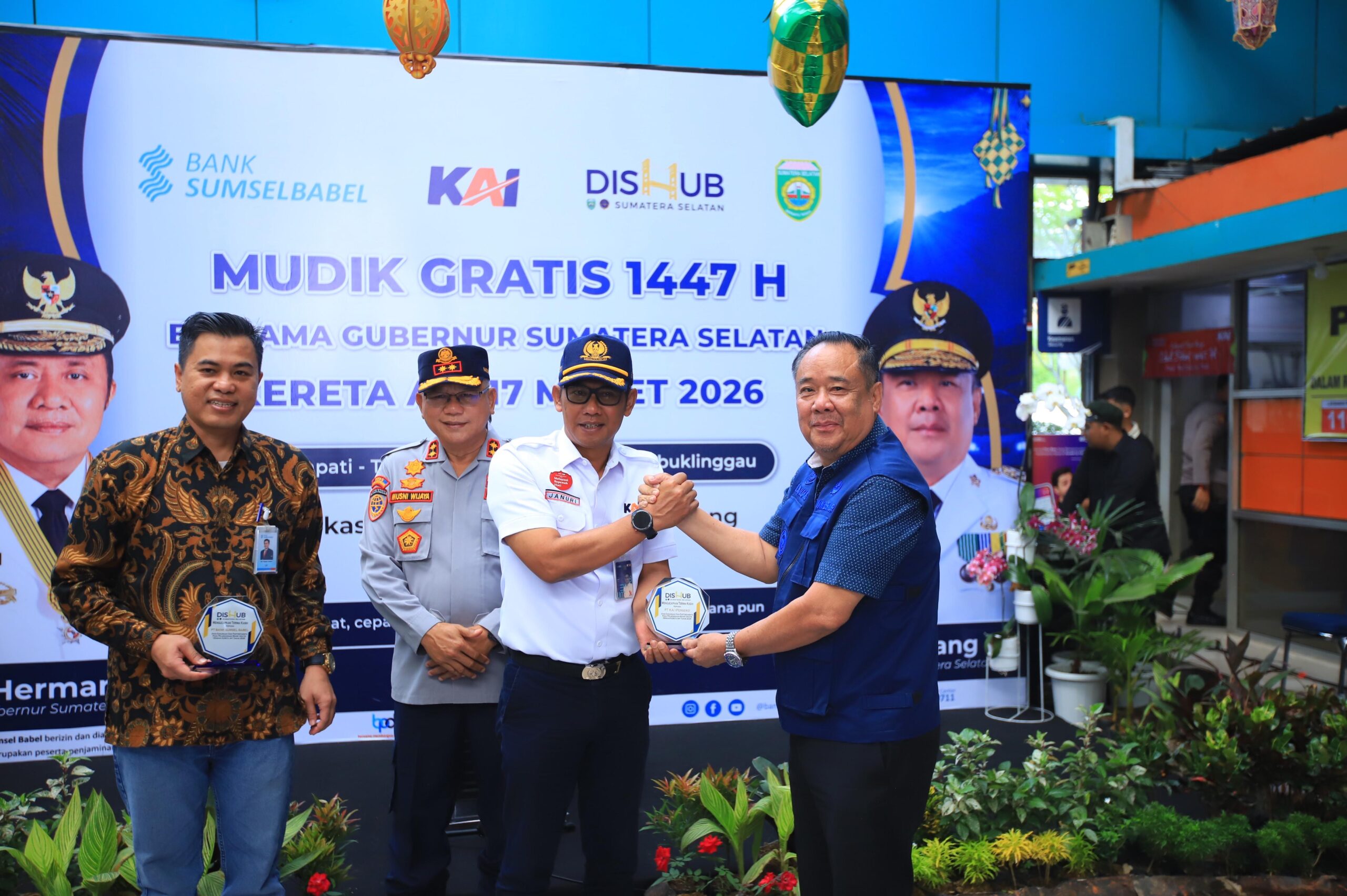 Selain pemberangkatan kereta api, pada momentum Mudik Lebaran Idulfitri 1447 H ini Pemerintah Provinsi Sumatera Selatan juga melepas program mudik gratis menggunakan bus antarkota dan antarprovinsi yang membawa pemudik ke sejumlah daerah tujuan.